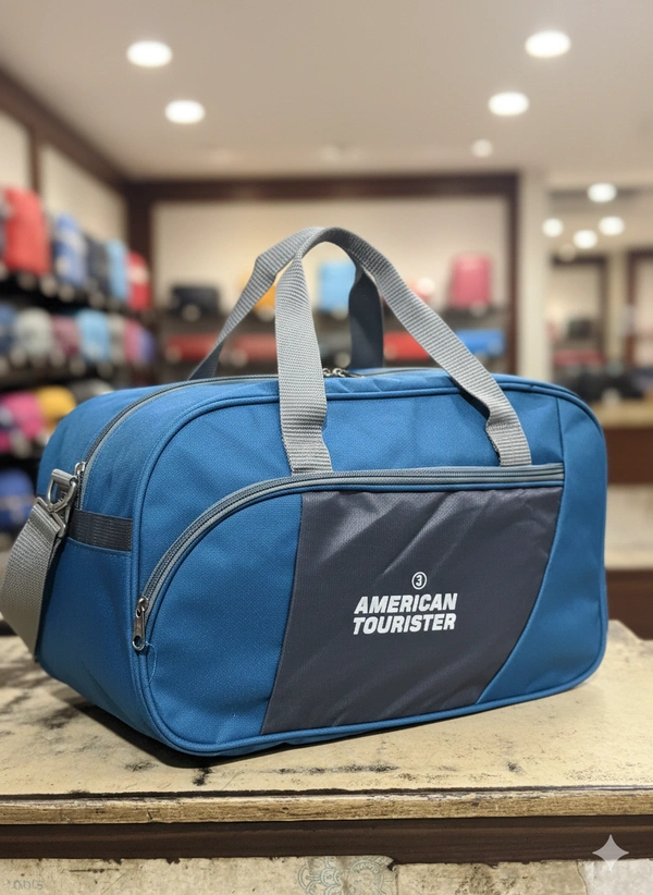 This versatile and vibrant American Tourister duffel bag is the perfect companion for your gym sessions, short trips, or as a handy cabin bag. It features a striking T BLUE body contrasted with Nevy Blue and grey accents, offering a sporty and modern look.