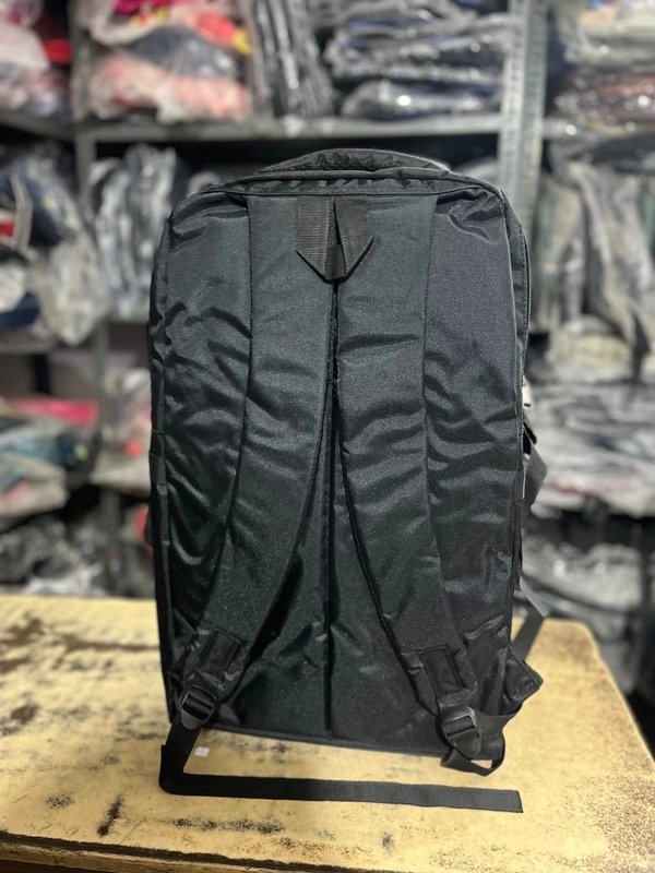 Main Compartments: At least two large, top-zippered compartments for storing books, gear, or clothing (visible on the side view.