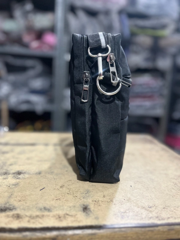 This is a compact and versatile American Tourister Crossbody Sling Bag, designed for those who need a lightweight, secure way to carry their daily essentials. Its sleek black aesthetic and durable nylon construction make it an ideal companion for travel, commuting, or casual outings.