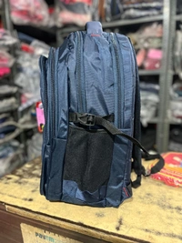 This versatile backpack combines durability with a sleek, professional aesthetic. Designed for students and commuters alike, it features a robust multi-compartment layout to keep your tech, books, and accessories organized. The deep navy blue fabric has a subtle sheen that is both stylish and resistant to everyday wear and tear.