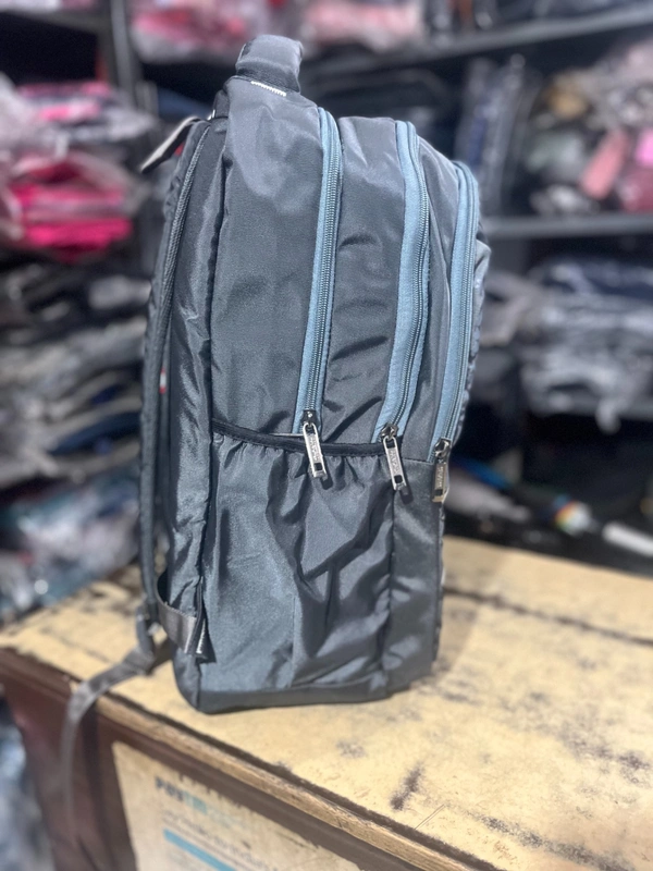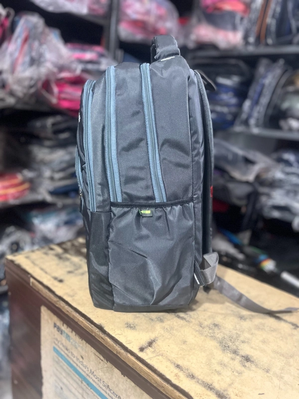 This backpack is the perfect blend of durability and urban style. The light blue contrast stitching and zippers provide a fresh look against the dark grey fabric, while the multiple compartments make it an ideal choice for college students or weekend travelers who need to keep their gear organized.