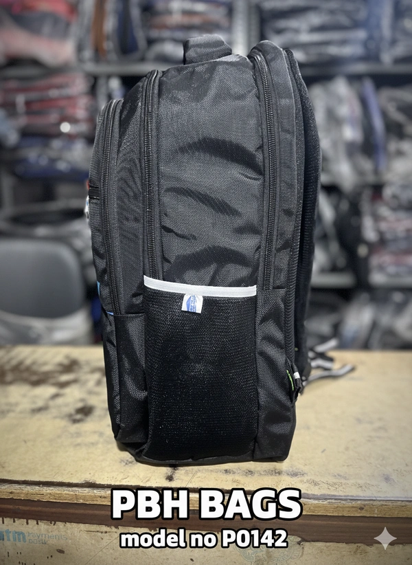 he PBH Bags Model P0142 is a sleek, professional-grade backpack designed for maximum utility and everyday durability. Featuring a classic black exterior with subtle blue accents, this bag is engineered to handle the demands of students and commuters while maintaining a clean, modern aesthetic.