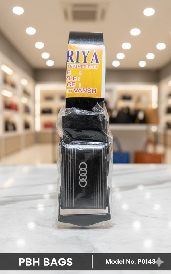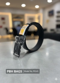 Elevate your professional and casual wardrobe with the PBH BAGS Model P0143. This sleek, black leather belt combines modern functionality with a sophisticated aesthetic. Featuring a high-quality auto-lock buckle adorned with a classic four-ring metallic emblem, it offers a precision fit without the need for traditional belt holes.
