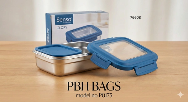 Elevate your lunch break with the PBH BAGS Model P0175, a robust and stylish tiffin designed for health-conscious individuals. Part of the "Glory" series by Seamo, this lunch box stands out with its superior build quality, featuring stainless steel not just in the container, but also embedded in the lid for minimal plastic contact with your food.