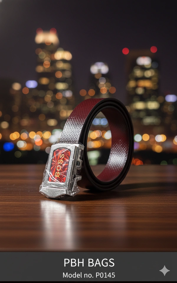 For a contemporary, industrial aesthetic, the PBH BAGS Model P0145 features a unique cross-hatch textured strap. The Mehroon strap is paired with a high-shine metallic buckle featuring a golden-tone inlay, making it a perfect statement piece for evening wear or modern business attire.