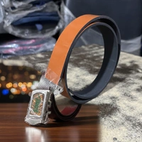 Signature Buckle: Metallic frame with a decorative golden inlay.