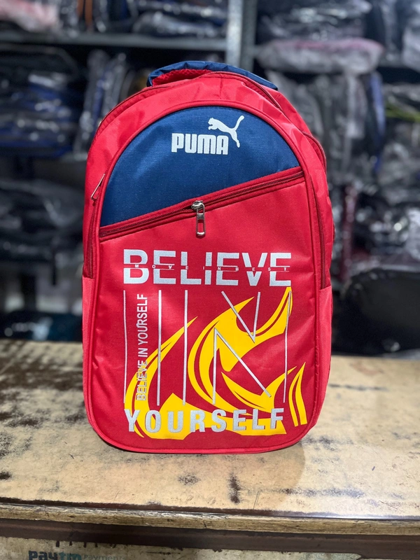The "Believe in Yourself" Edition Backpack is crafted from a durable, water-resistant synthetic fabric. Featuring the iconic Puma branding alongside bold motivational graphics, this bag is perfect for school, college, or light travel.