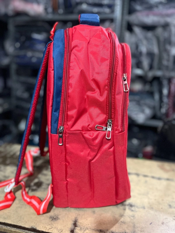 Colorway: Electric Red with Bkue accents and White/Blue striped detailing on the straps.