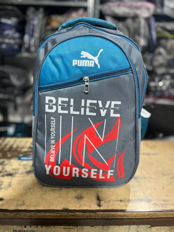 The "Believe in Yourself" Edition Backpack is crafted from a durable, water-resistant synthetic fabric. Featuring the iconic Puma branding alongside bold motivational graphics, this bag is perfect for school, college, or light travel.