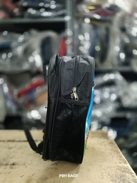 The rest of the bag is primarily providing a stark contrast to the colorful front. It is constructed from a durable, lightweight synthetic fabric suitable for a child's first school or activity bag.