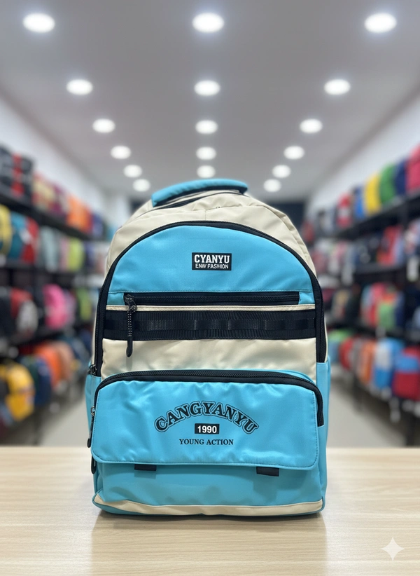 The CYANYU "Young Action" Backpack combines a lightweight design with high storage capacity. Made from a durable, water-resistant synthetic nylon with a slight satin finish, it is built to handle the rigors of daily use while maintaining a trendy, youthful look.