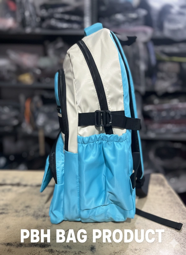 This is a stylish and functional multi-compartment backpack designed with a contemporary "streetwear" aesthetic. It features a striking two-tone T Blueand Cream color scheme, perfect for students, commuters, or casual travelers.