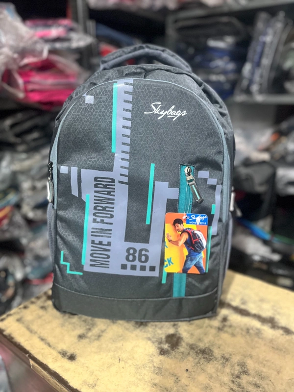 The Skybags Move Style series focuses on a "Move in Style" philosophy, featuring a sleek black exterior accented with vibrant cyan/blue geometric patterns. Its multi-compartment design ensures you can organize everything from textbooks to tech accessories with ease.