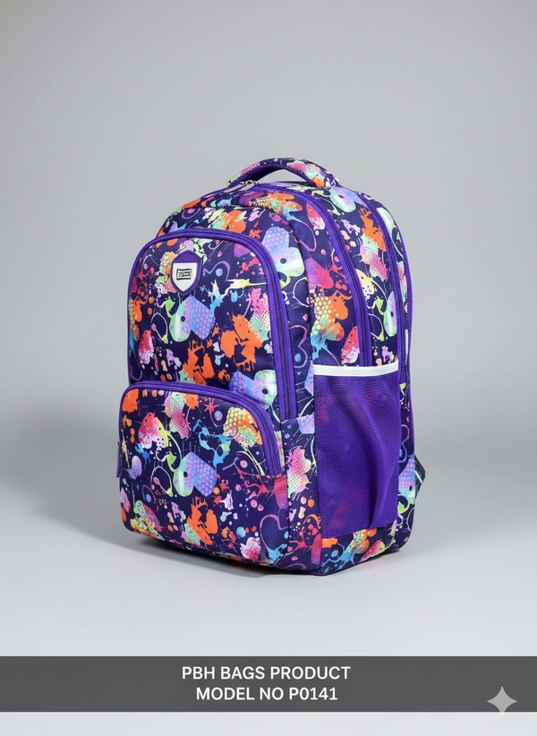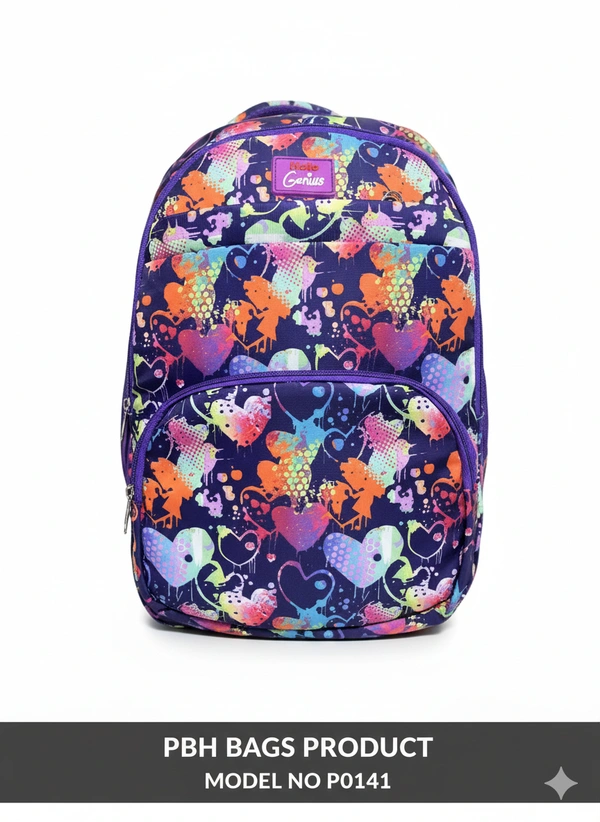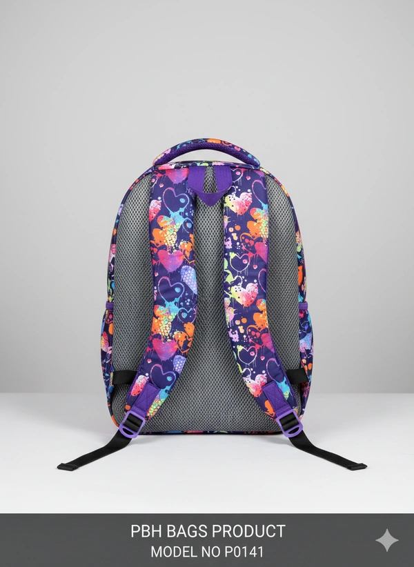 Elevate your daily commute or weekend adventures with the PBH Bags Model P0141. Featuring a vibrant, stylized mountain range print in a modern palette of Purple, coral, and slate blue, this backpack perfectly blends outdoor-inspired aesthetics with urban functionality.