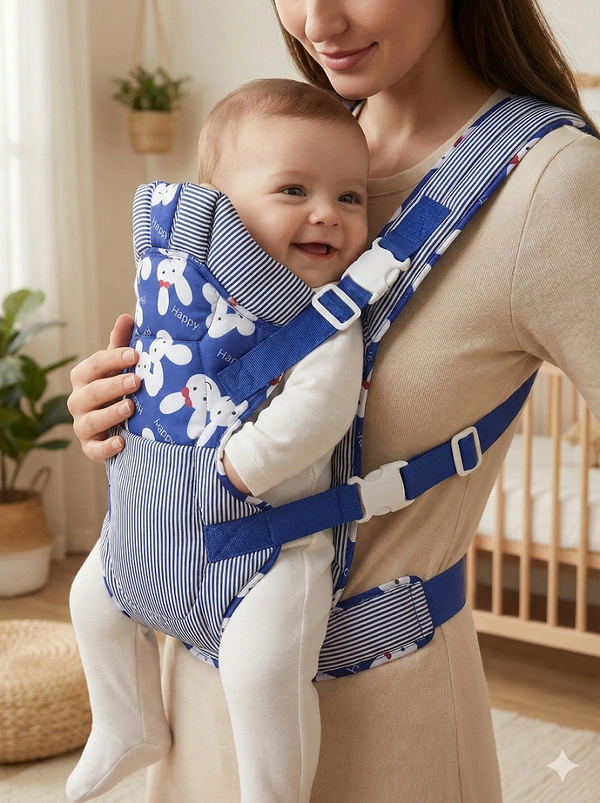 Keep your little one close, secure, and smiling with the "Happy Bunny" Ergonomic Baby Carrier. Designed for modern parents who value both style and functionality, this carrier features a cheerful royal blue and white striped pattern paired with a playful bunny motif. Whether you are doing chores around the house or going for a walk in the park, this carrier ensures your baby is comfortable while keeping your hands completely free.