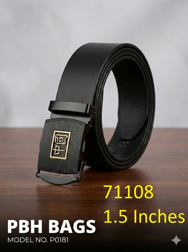 Upgrade your wardrobe with the sophisticated PBH Bags Model No. P0181. This premium black belt features a sleek, track-style automatic buckle, removing the need for traditional holes and providing a perfectly tailored fit every time. The buckle is adorned with elegant gold-tone character detailing against a brushed black metallic face, making it a standout accessory for formal events or professional office wear.