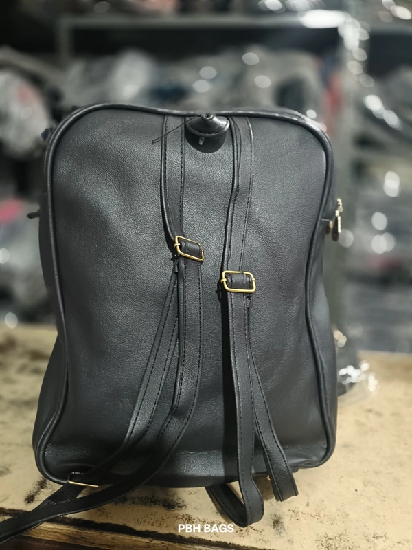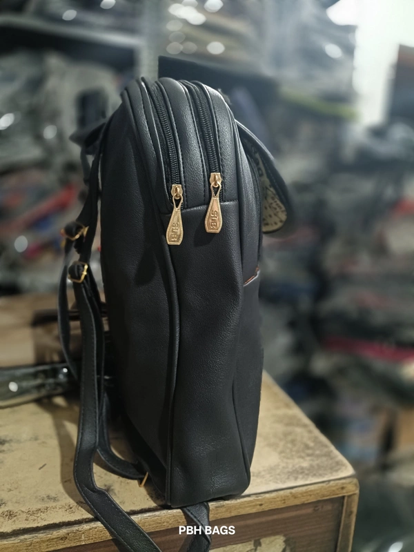 • Style & Material: This backpack has a sleek, rounded rectangular shape and appears to be made from a faux leather or PU material with a slightly textured or crinkled finish.
