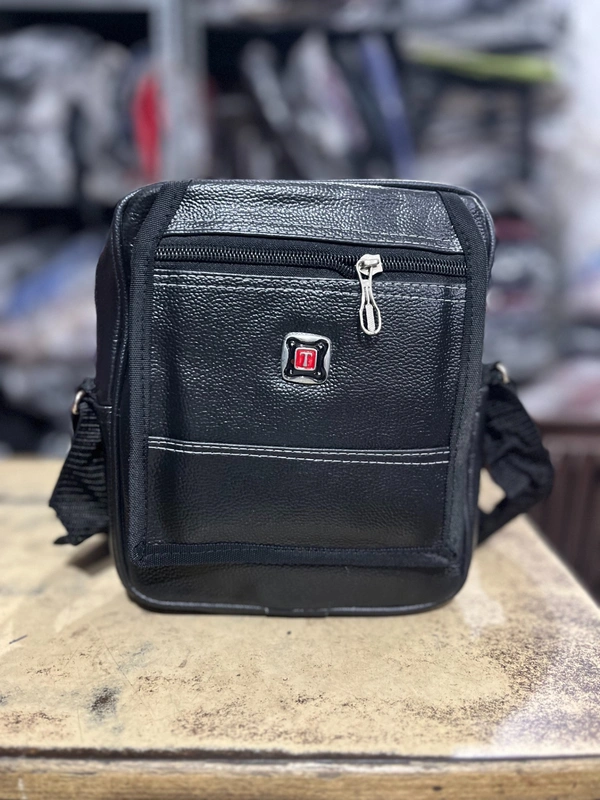 This is a compact, black sling bag, suitable for carrying essentials like a phone, wallet, and keys. It appears to be made from a textured, possibly synthetic leather material (faux leather) with visible stitching detail, giving it a stylish yet casual look. The bag is branded "RED TAPE," as seen in a small logo embossed or printed on the front.
