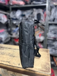 Accents and Hardware: It features gold or brass-toned zippers and strap buckles , which provide a distinct contrast against the black material. There is also a small, sleek gold accent near the bottom of the front pocket.