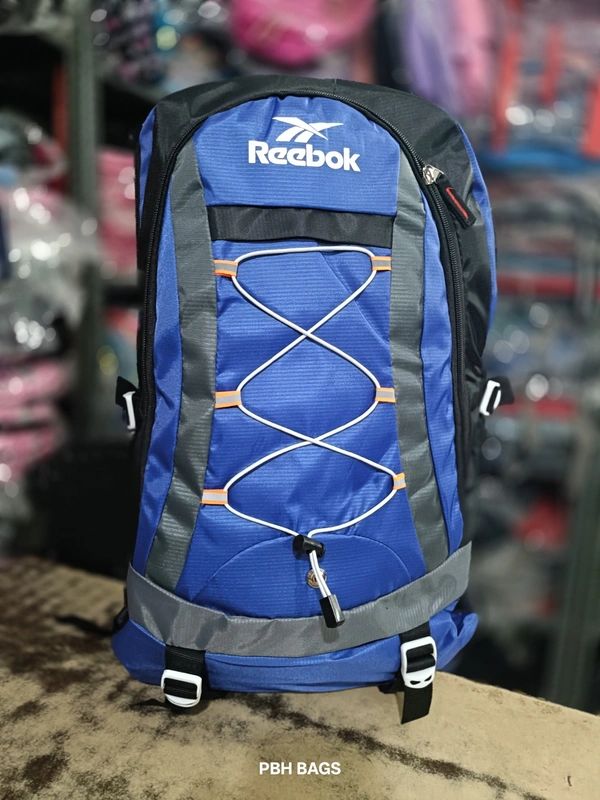 Branding: Features the Reebok wordmark and logo prominently displayed in white on the top front panel.