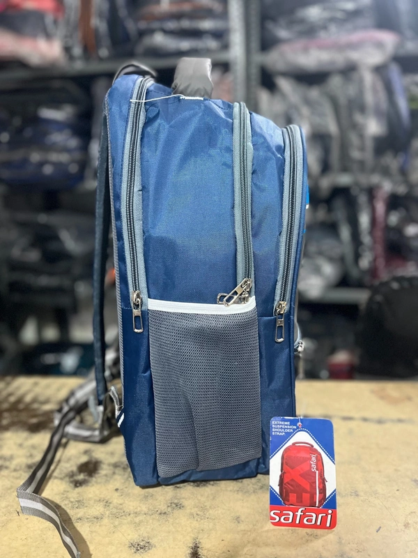 The Safari "Gearlessly Authentic" Backpack is built with high-quality, durable materials designed to withstand daily wear and tear. Its sleek navy and grey color palette is complemented by vibrant cyan accents, making it a professional yet modern choice for students and professionals alike.