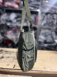 Side Pockets : Both sides of the bag feature vertical zippered pockets with dark zipper coils, providing quick-access storage for smaller items without adding much bulk.